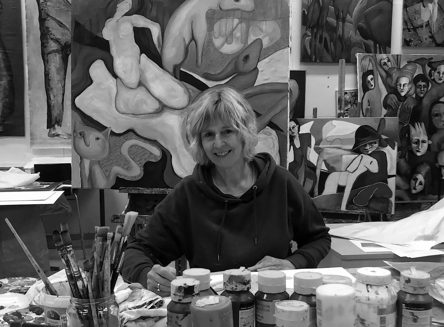 We transform Eline Achterhuis' vibrant art into wearable pieces. Each garment is a canvas showcasing her unique style, empowering you to express yourself through art in your everyday life.